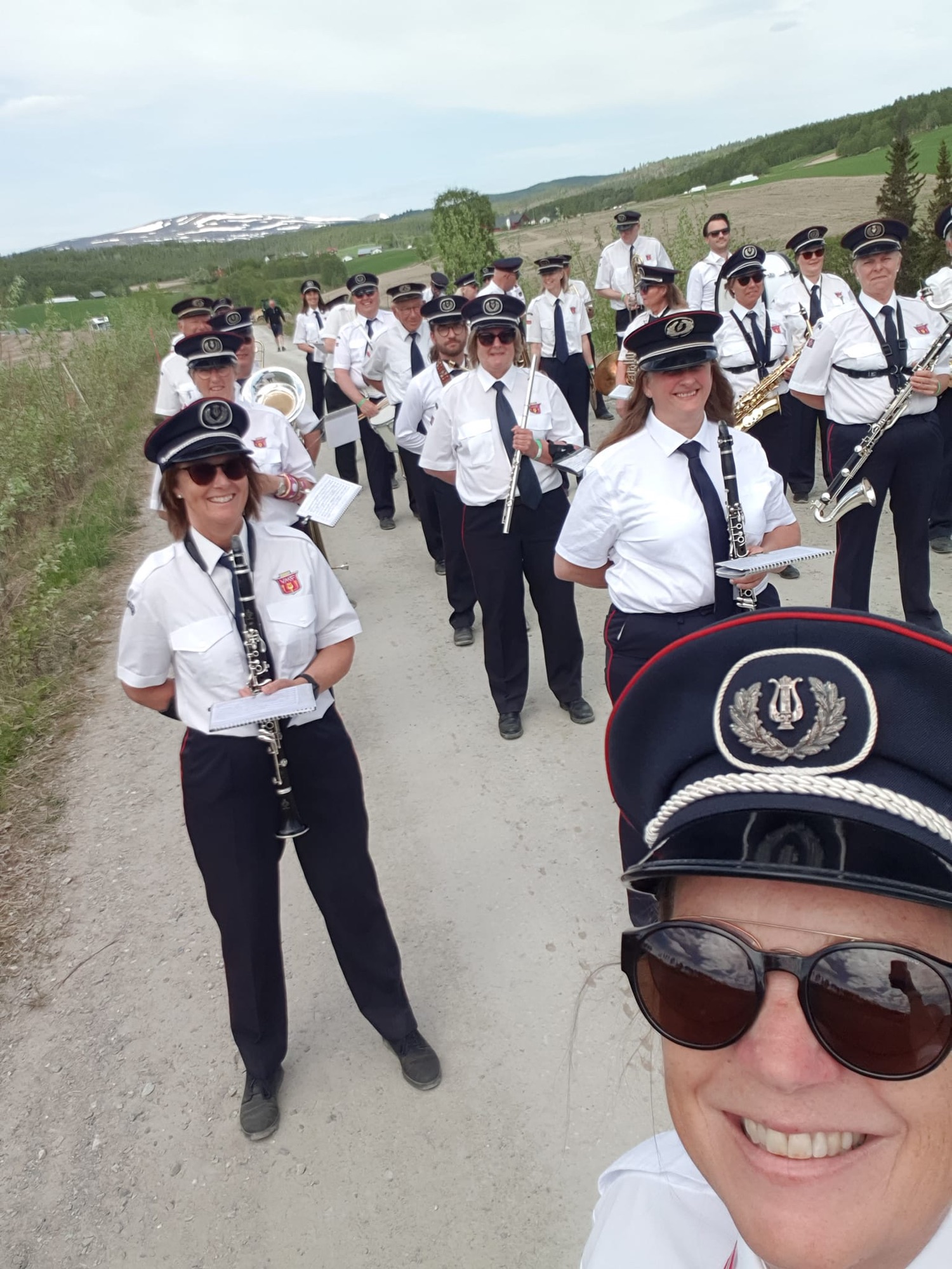 I InnlandetCamille som er tamburmajor med en liten selfie på musikk stevnet på Tolga/Os i 2023